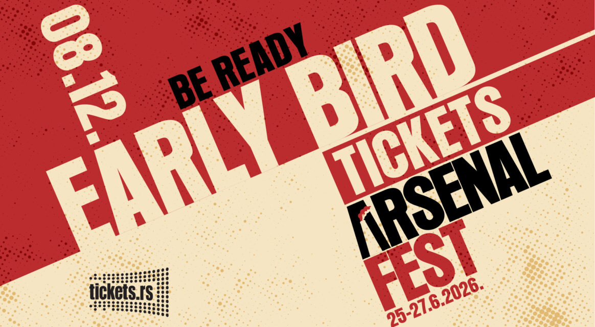 U ponedeljak, 8. decembra, tačno u 10 časova, počinje prodaja “early bird” kompleta karata za Arsenal Fest 2026, koji će biti održan 25, 26. i 27. juna u jedinstvenom prostoru Kneževog arsenala u Kragujevcu. Publiku i ove godine očekuju tri velike festivalske pozornice – Main, Garden i Explosive DJ Stage – kao ključni nosioci raznovrsnog i pažljivo kreiranog programa.